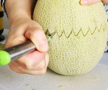 2. “水果艺术展”:一位小伙伴将哈密瓜切成各种形状,仿佛在举办一场水果艺术展。